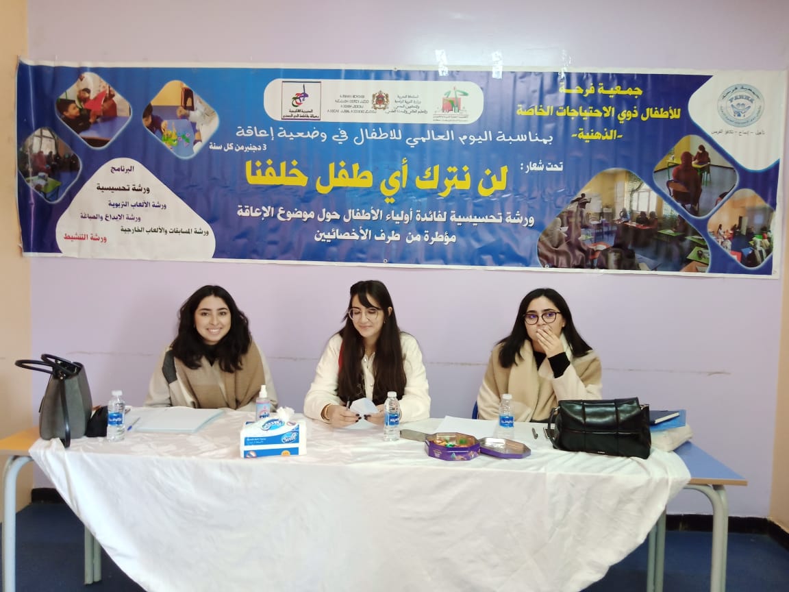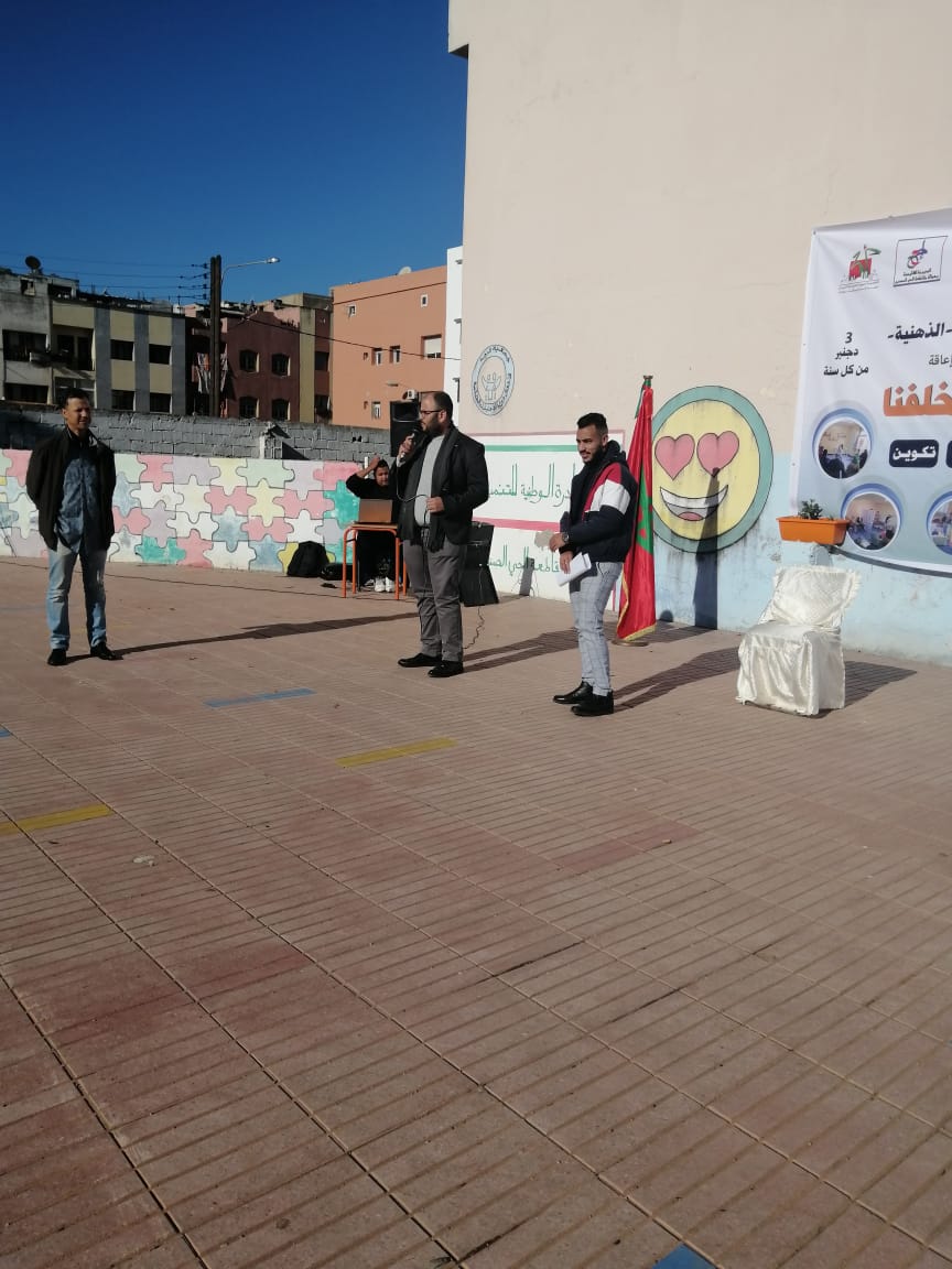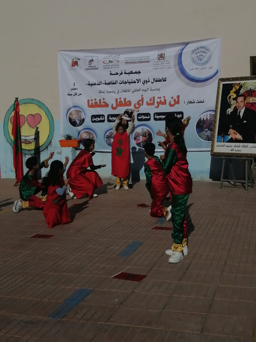 بمناسبة اليوم العالمي للاشخاص في وضعية إعاقة ،الذي يصادف 03 دجنبر من كل سنة، وتحت شعار ” لن نترك أي طفل يصادف خلفنا “ ، نظمت جمعية فرحة للأطفال في وضعية إعاقة، بشراكة مع مدرسة الشهيد العربي البناي ،جمعية الواحد المغربية ومؤسسة بن كيران الخصوصية، دورات تحسيسية للمفهوم الحقيقي للدمج في الحياة الاجتماعية والمدرسية. وذلك من خلال تنظيم ندوات حول الإعاقة قام بتنشيطها اخصائيو الجمعية في أفق إذكاء الوعي الجمعوي لديهم من جهة ، ومن خلال تحسيس أسرهم من جهة ثانية، وذلك بالتركيز على مفاهيم شتى من قبيل الاختلاف والتقبل والتعايش ..علاوة على أنشطة رياضية بهدف تعزيز روح التعاون والتكافل ، وأخرى فنية لعبت فيها الصباغة والفرشاة دورا مهما لإبراز مواهب الأطفال والتعبير عما يجول بدواخلهم ، إضافة إلى تقديم ورشات موسيقية الغاية منها إذكاء روح الملكة الإبداعية للطفل ، والرقي بالذائقة الفنية والحسية لديه .