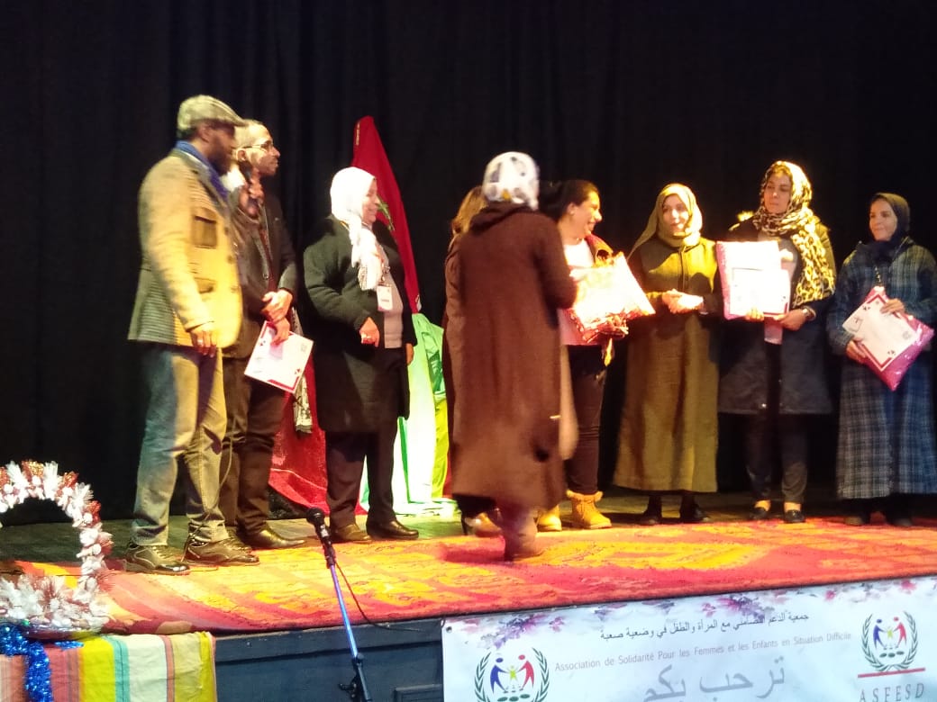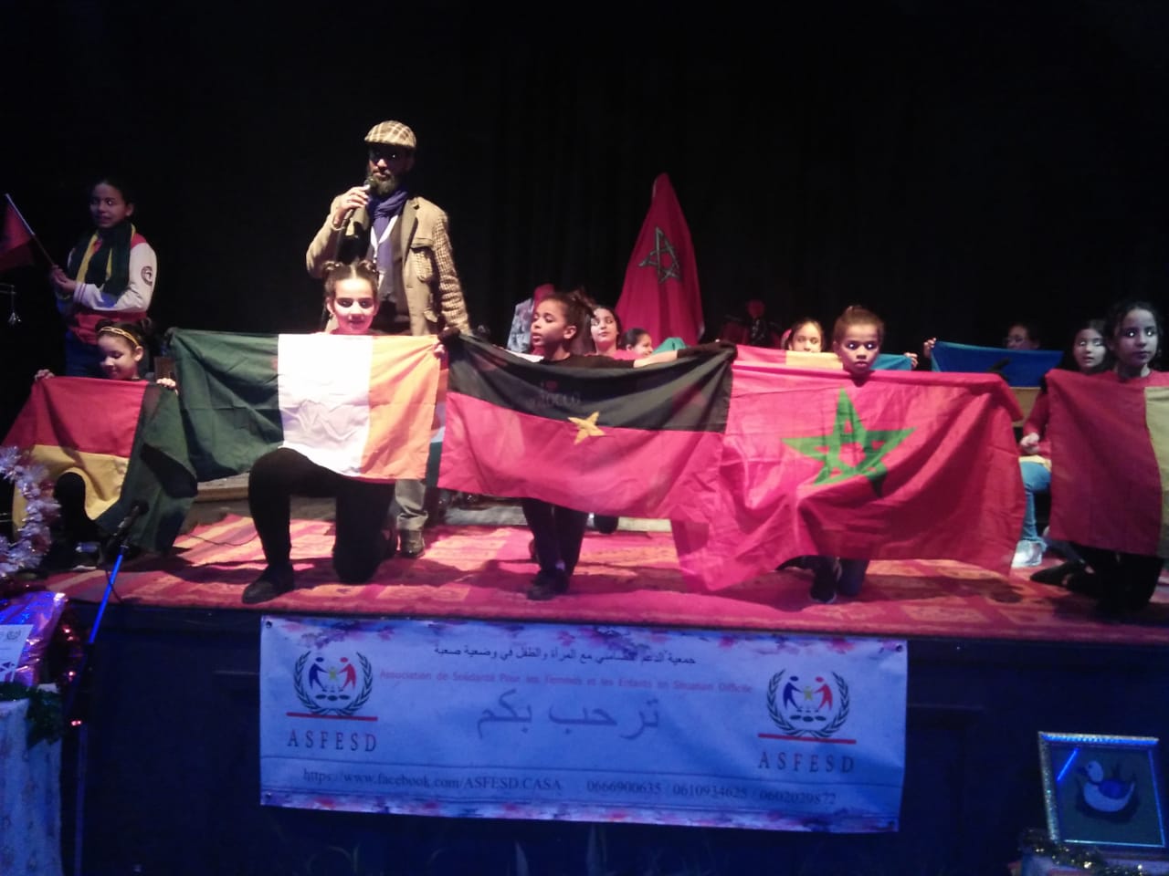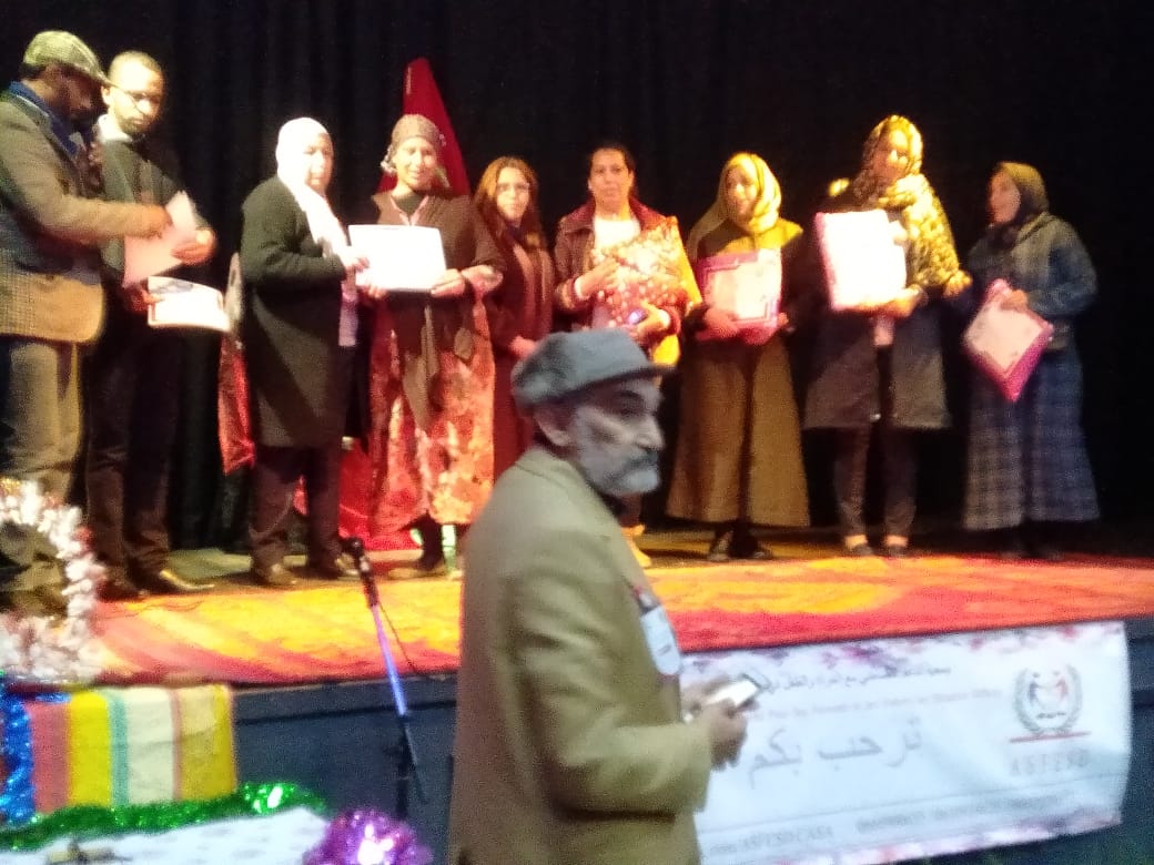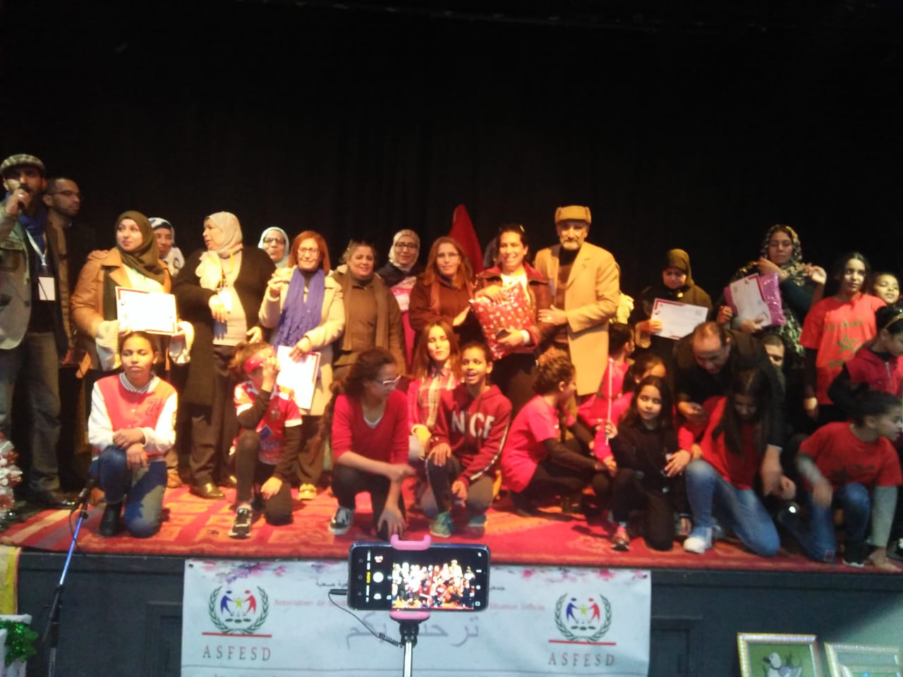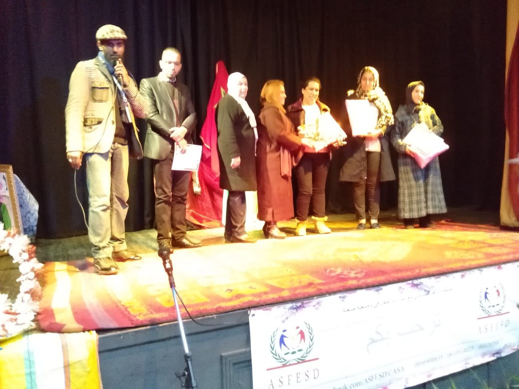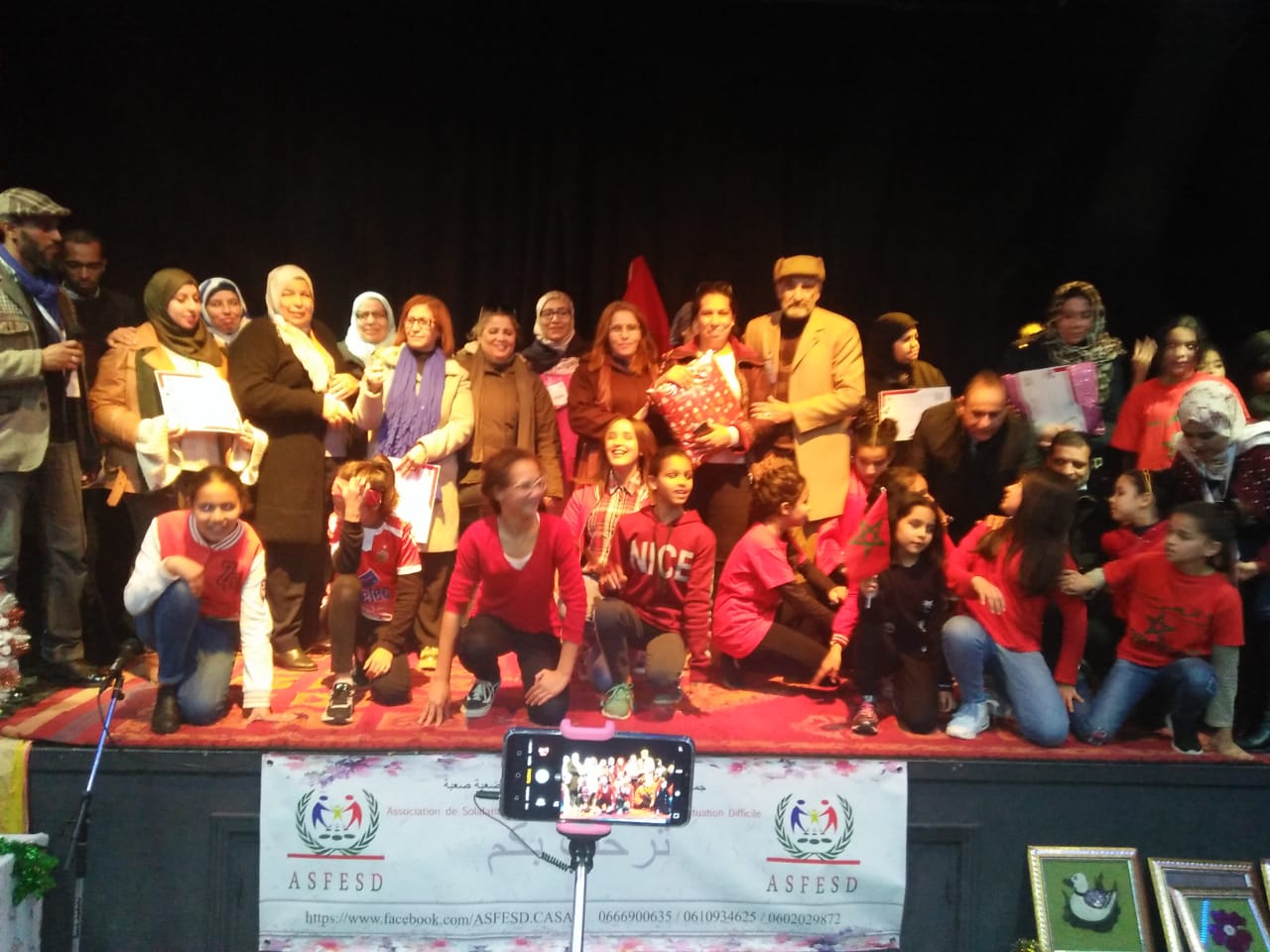 ليختم الحفل بتوجيه الشكر والتقظير لكل من ساهن من بعيد او قريب في احياء وانجاح هذا الحفل ونخص بالذكر السيد يوسف عبة مدير دار الشباب الحي الحسني ،مجلس دار الشباب في شخص السيد كريم نخلة والسيظ الحسن ولد المسكين،الحراس العامون للمؤسسة السيد عبدالرحيم والسيد زهير على لكفهم وسعة قلبهم في استقبالنا ،السادة والسيدات رؤساء جمعيات المجتمع المدني بمقاطعة الحي الحسني .. فاطمة الغيوانية.. لليلى حمامة “ج .اسود البركة “سعاد محاسين” ج. انجال”نادية الصحابي ” ج.اكرام لمعاق الفشل العضلي ” ج . شمس الحقوقية ، اطر ج.الواحة لمغربية ،زهور “ج.وليدات الخير” خديجة شبشاب”ج.يد الله مع الجماعة “،الاستاذ عبد القادر مخلص ،الفنان سعيد مسك، الاستاذ محمظ فاضل ، الاستاذة لطيفة .. وجل الحضور .